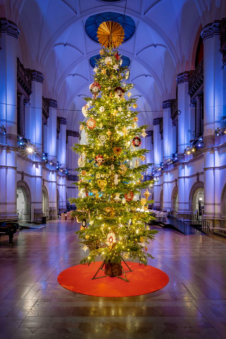 Årets åtta meter höga julgran hyllar historiens kvinnor inom textil och folkbildning med hjälp av Lina Odell – nyskapande slöjdare, textilkonstnär och sömmerska.