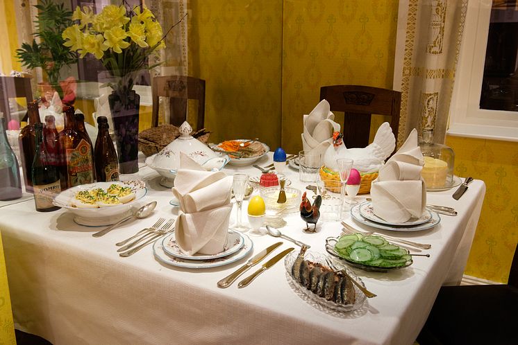 Påskmåltiden hos en slaktarfamilj i Hälsingland 1915, ur utställningen Traditioner på Nordiska museet.
