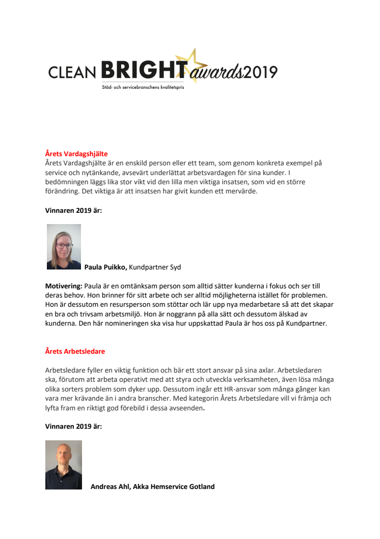 I dag på branschmässan Clean & Facility i Örebro presenterades vinnarna av 2019 års Clean Bright Awards under festliga former.