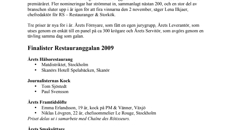 - Det är andra året vi arrangerar Restauranggalan och vi har märkt en stor skillnad mot premiäråret. Fler nomineringar har strömmat in, sammanlagt nästan 200, och en stor del av branschen sluter upp i år igen för att fira vinnarna den 2 november, säger Lena Ilkjaer, chefredaktör för RS - Restauranger & Storkök.