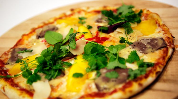 1. Tony Gerasovski på Pizzeria Fazana i Nyköping med sitt bidrag ”Bison”, baserad på bisonpuckelfilé från Sveriges första bisonfarm som marineras i Jack Daniels whiskey glaze.