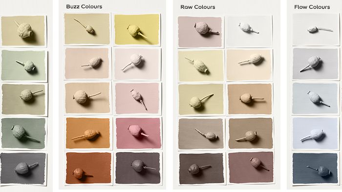 “Flow Colours” - med inspiration av tidvatten, vågor och jordens naturliga rytm, hjälper Flow-paletten oss att skapa en känsla av kontinuitet och balans. Vatten, snäckor, sand och sten – kulörer från havet och stranden ger oss lugn och närhet till naturen.