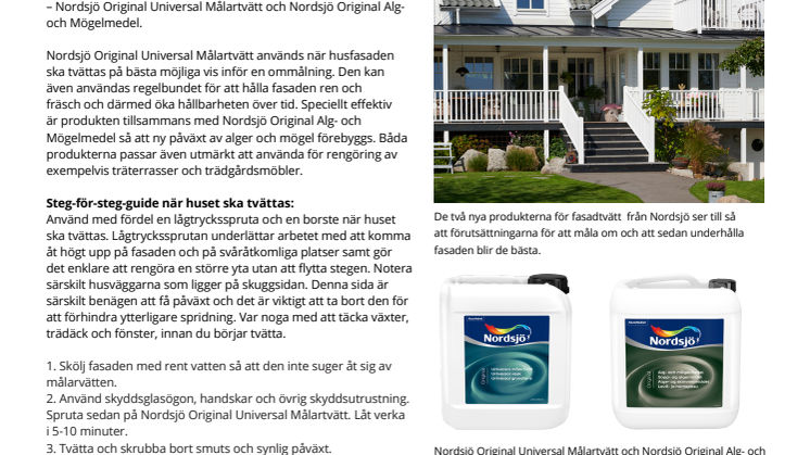 Nu lanserar Nordsjö de två produkterna för fasadtvätt som ser till så att förutsättningarna att måla om och underhålla blir de bästa