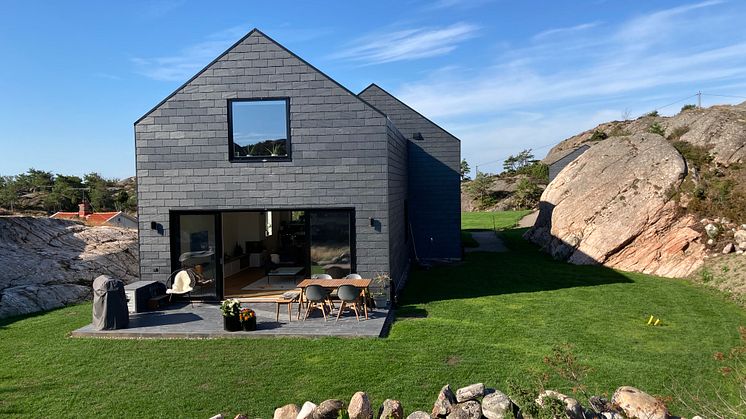 • Takskifferfasad på villa, leverantör Nordskiffer