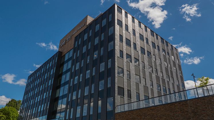 Skifferklädda World Trade Center i Växjö är nominerad till Årets Byggnadspris 2017.