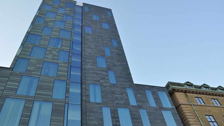 – Skiffer är ett väldigt enkelt och bra material att arbeta med, vilket är viktigt för oss som bygger. Att det dessutom är skonsamt för miljön är naturligtvis en bonus. Vid tvåårsbesiktningen på fasaden i Helsingborg hittades inga fel. Nu har det gått ytterligare fem år och vi har inte fått några anmärkningar. Tvärtom så är alla väldigt nöjda med materialvalet, säger Anders Bringert.