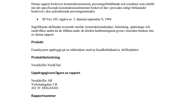 Ett unikt brandtestet av naturstensfasad enligt SPFire105 har genomförts hos RISE. Beställare av testet var företaget Nordskiffer, som är leverantör av fasadsystem för takskifferplattor.