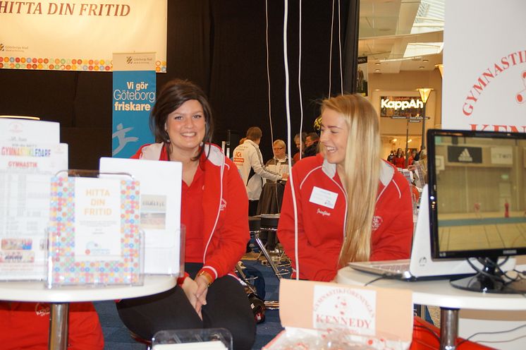 Michaela och Josefin berättar om gymnastikföreningen Kennedy mitt i Nordstan under Hitta din fritid.