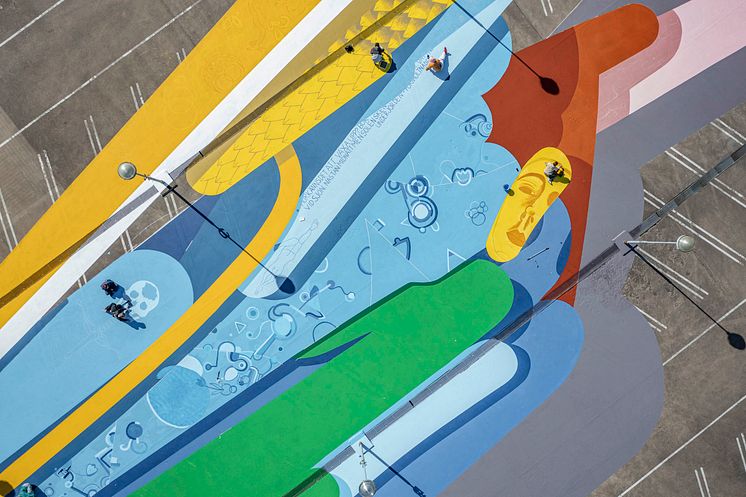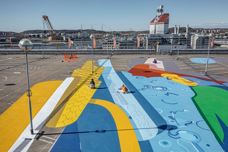 - Vårt p-hustak har fått en verklig färginjektion och målningen frigör kreativiteten både hos oss och våra samarbetspartners. Ett antal event planeras på det muralmålade taket framöver och vi börjar med gratis yoga för göteborgarna imorgon bitti. Jag är stolt och glad över att Nordstan deltar i det europeiska projektet och är övertygad om att stadens tak utgör en viktig resurs för framtiden, säger Helena Lindqvist, VD på Nordstan.