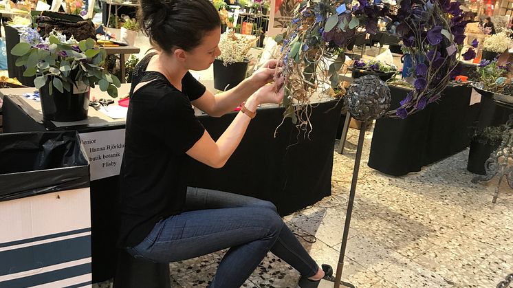Hanna Björklund från Butik Botanik i Flisby strax utanför Nässjö blev årets vinnare i Sm Blomsterbinderi.