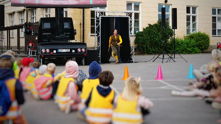 - På den här turnén v 22 räknar vi med att nå ca 4500 barn, från förskoleklass till årskurs 6. Det blir 15 konserter på 5 dagar, och i augusti, v 35 gör vi samma sak igen men på 15 andra skolor, säger Charlotte Råström, Barn-och ungdomsproducent, SON.