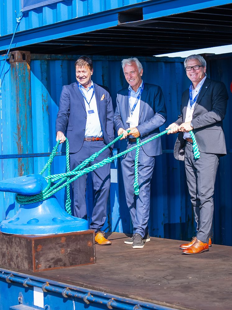 Fr.v. Bengt Sand, Styrelseordförande Norrköpings Hamn, Reidar Svedahl, Kommunalråd, Norrköpings Kommun, Henrik Åkerström, VD, Norrköpings Hamn