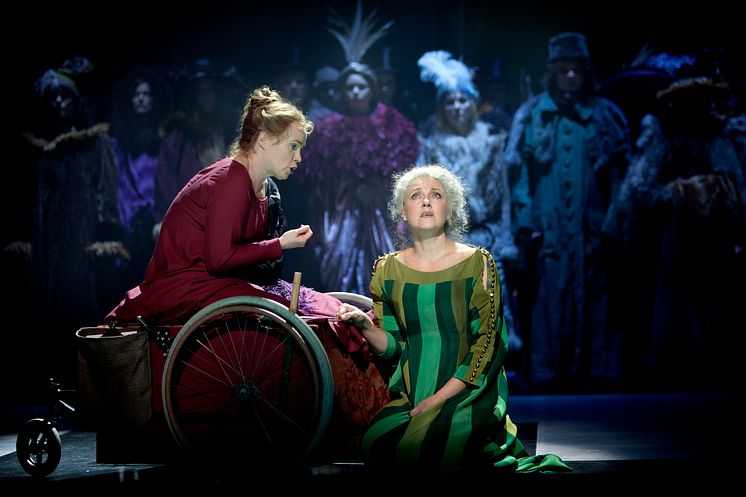 Charlotta Larsson som Blanche Wittman & Susanna Levonen som Marie Curie. I bakgrunden NorrlandsOperans kör