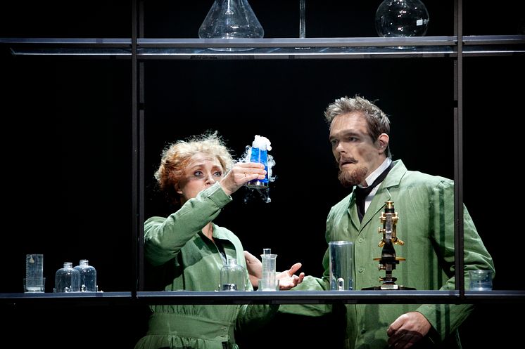 Susanna Levonen som Marie Curie och Karl Rombo som Pierre Curie. Foto: Malin Arnesson