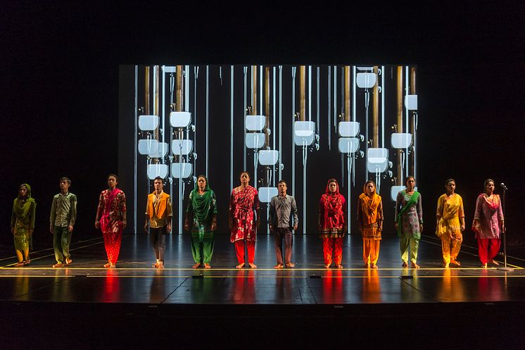 I Helena Waldmanns Made in Bangladesh speglas symaskinernas snabba nålar och fabriksarbetarnas hårda slit genom tolv kathak-dansare på scen.