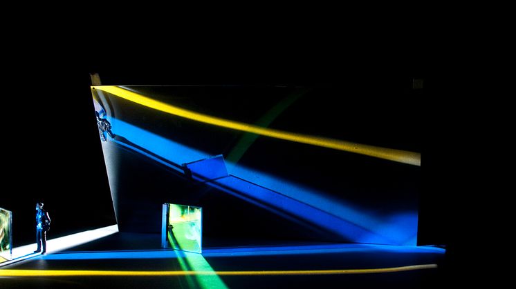 framförs live. I taket projiceras ett fladdrande norrsken och sökande stråkar