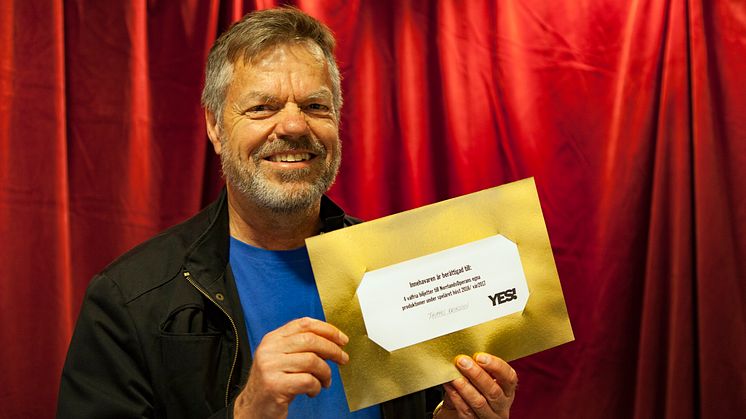 • Thomas Eriksson med guldkuvertet som innehöll fyra fribiljetter