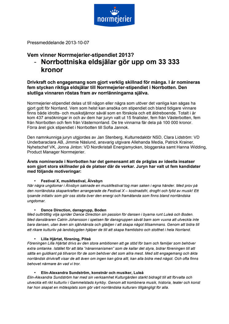 Vem vinner Norrmejerier-stipendiet 2013? - Norrbottniska eldsjälar gör upp om 33 333 kronor