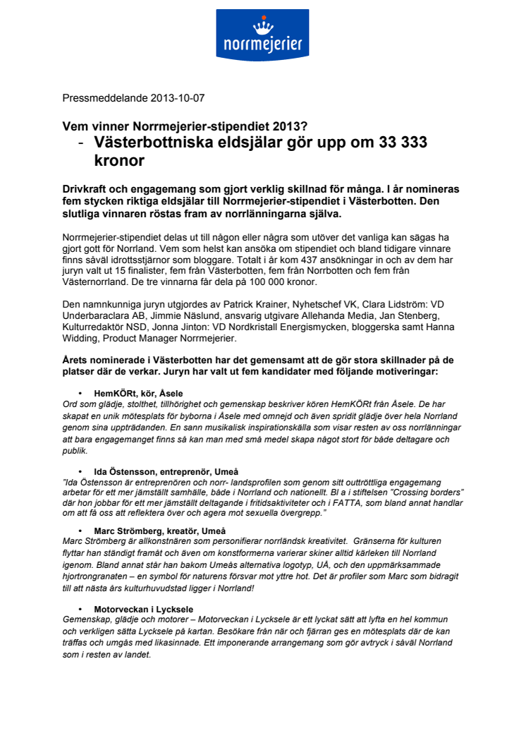 Vem vinner Norrmejerier-stipendiet 2013? - Västerbottniska eldsjälar gör upp om 33 333 kronor