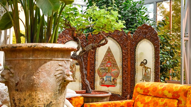 ”Marie ser i bilder och känner i känslor, hon inreder och skapar likt en dans. På solbränd sand från Kalahari överraskar Maries vackra föremål från marknader, auktioner, loppisar från världens alla hörn. Växter som får dig att minnas High Chaparall, det är hett och solen står högt på himlen. Soleil är en utställning som är lite sådär ”Comsi Comsare”, avslutar utvecklingsansvarig på Norrvikens trädgårdar, Lotte Karlefors.