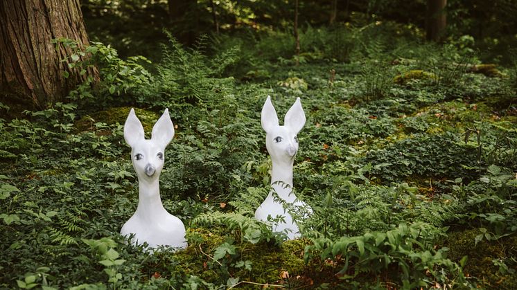 ”Mina skulpturer kommer att dyka upp i trädgårdarna, i Erikshus samt i villan. De ser dig, de undrar vem du är, var du kommer ifrån och vad du tänker och känner där längst inne. De vill möta dig, men inte tränga sig på, de vill finnas för dig och vara dig nära, men lite vid sidan av. I Erikshus har även en förvirrad luftande råkat komma in, egentligen skulle den vara på plats utomhus men den missuppfattade sin uppgift och är mycket nöjd med sin placering.” Karin Wiberg
