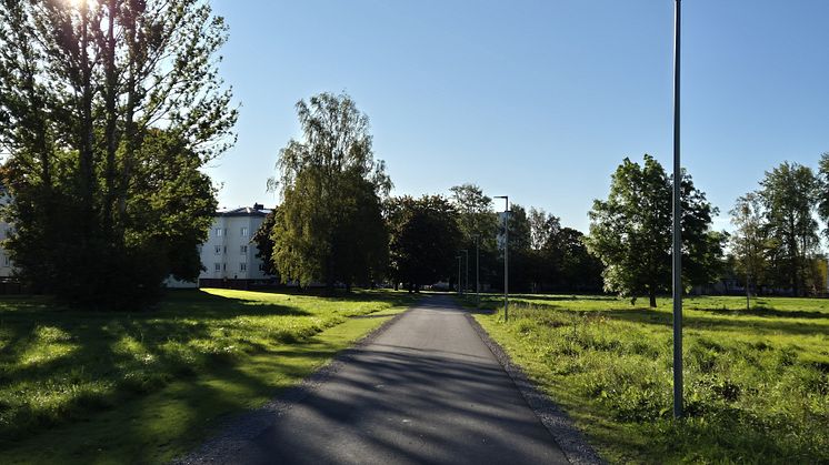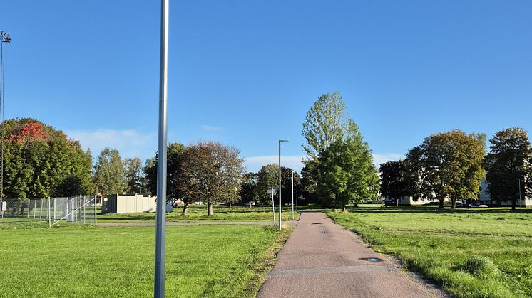 Ombyggnationen innebär också en gång- och cykelbana som gör området till en bilfri miljö med modern belysning, vilket gör sportfältet tryggare och mer attraktivt för både boende och besökare.