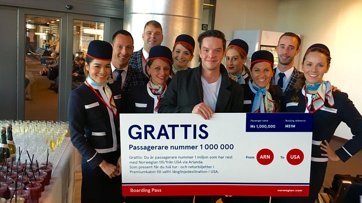 Idag firar Norwegian att hela en miljon passagerare har flugit på bolagets långlinjer till och från Stockholm sedan långdistansverksamheten startade 2013. Norwegian trafikerar idag sju linjer mellan Stockholm och USA och Thailand och är därmed det flygbolag som har flest långlinjedestinationer direkt från Arlanda.
