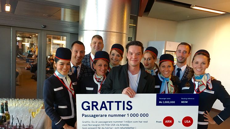 Norwegian hälsar idag passagerare nummer 1 000 000 som har flugit med Norwegians långlinjer på Stockholm Arlanda välkommen ombord. Bolagets långdistansverksamhet i Sverige startade i maj 2013 då första direktflyget gick till New York. Idag erbjuder Norwegian sju långdistanslinjer till USA och Thailand direkt från Stockholm vilket innebär att Norwegian är det flygbolag som har flest reguljära långlinjedestinationer från Arlanda. Totalt erbjuder bolaget nu hela 42 långdistanslinjer mellan USA och Europa och Thailand.