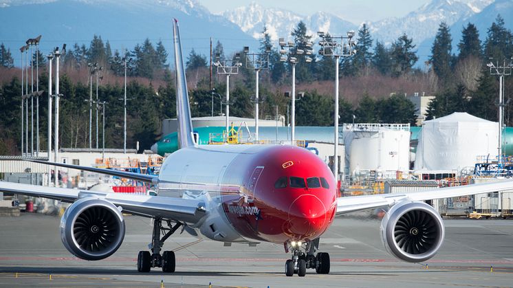 – Leverans av vår första 787-9 är en viktig milstolpe i Norwegians globala expansion. Med fler och större långdistansplan skapas tusentals nya arbetstillfällen både i luften och på marken. För resenärerna innebär det nya destinationer och låga priser. Nya flygplan sänker dessutom kostnaderna för bolaget och bidrar till lägre utsläpp, säger Norwegians VD Bjørn Kjos.