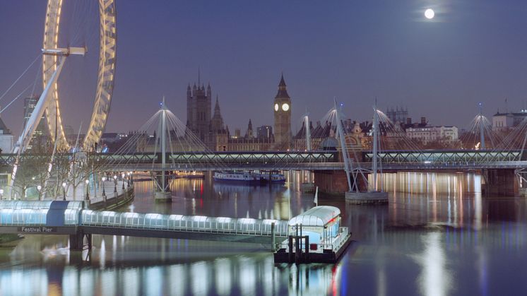 Foto: Festival Pier, London Bridge, Westminster och Hungerford Bridge i London