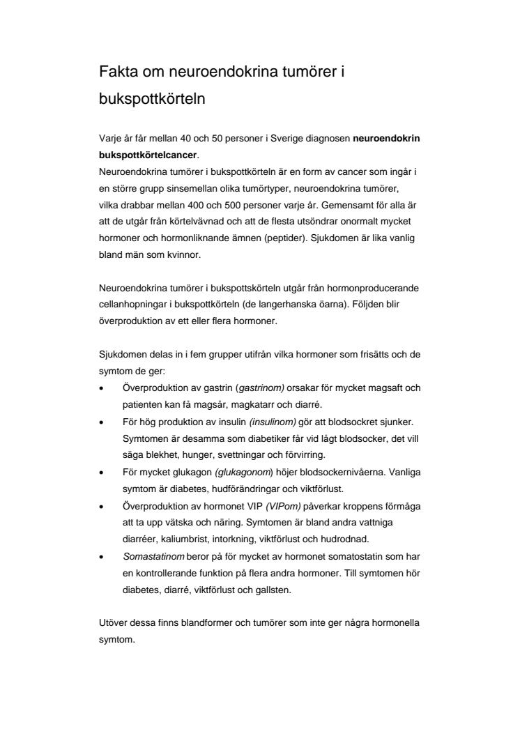 Fakta om neuroendokrina tumörer i bukspottkörteln