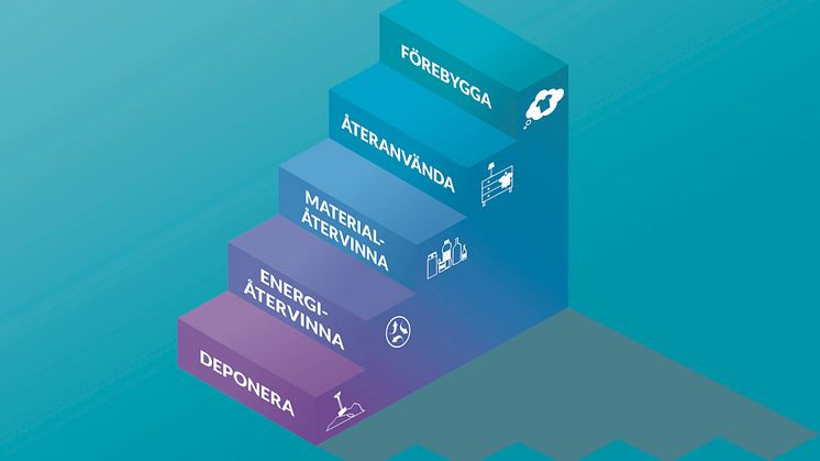 Avfallstrappan visar i vilken ordning olika metoder för att behandla avfall bör användas. Trappan, som grundar sig på ett EU-direktiv, har fem nivåer: deponera, energiåtervinna, materialåtervinna, återanvända och förebygga. I Sverige är vi bra på att återvinna, men vi är också bra på att konsumera. Därför räcker det inte att återvinna – vi måste klättra högre upp i avfallstrappan, till att återanvända och att förebygga att avfall uppstår.