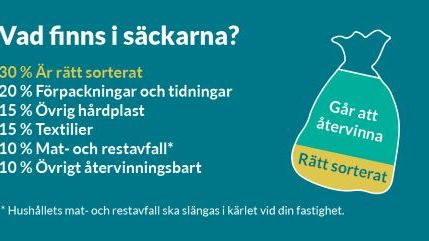 Nordvästskåningarna är duktiga på att sortera, men när det gäller det avfall som vi slänger på återvinningscentralerna måste vi bli ännu bättre på att sortera ut resurser som kan återvinnas. Analyser visar att bara 30 procent av avfallet i säckar med blandat innehåll är rätt sorterat, resten är avfall som går att återvinna – som förpackningar, textilier och elektronik.