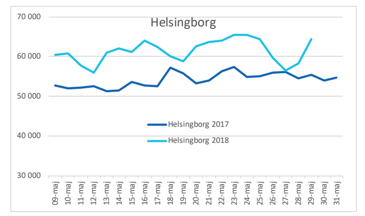 Helsingborg maj vattenförbrukning maj 2017 och 2018