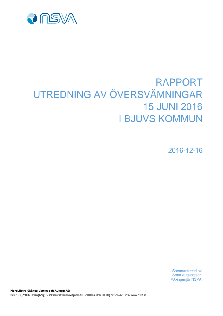 NSVAs rapport efter översvämningen i Bjuv juni 2016.