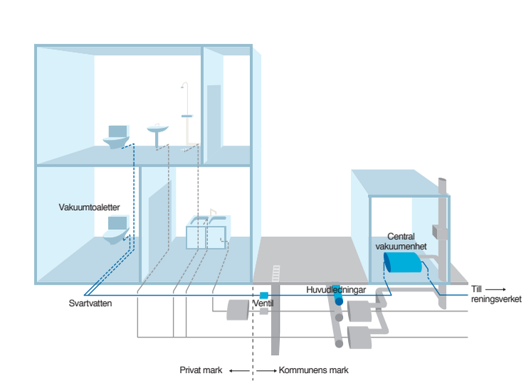 Skissen visar vilka avloppsrör som går från bostaden ut till reningsverket Reco lab i Helsingborg.