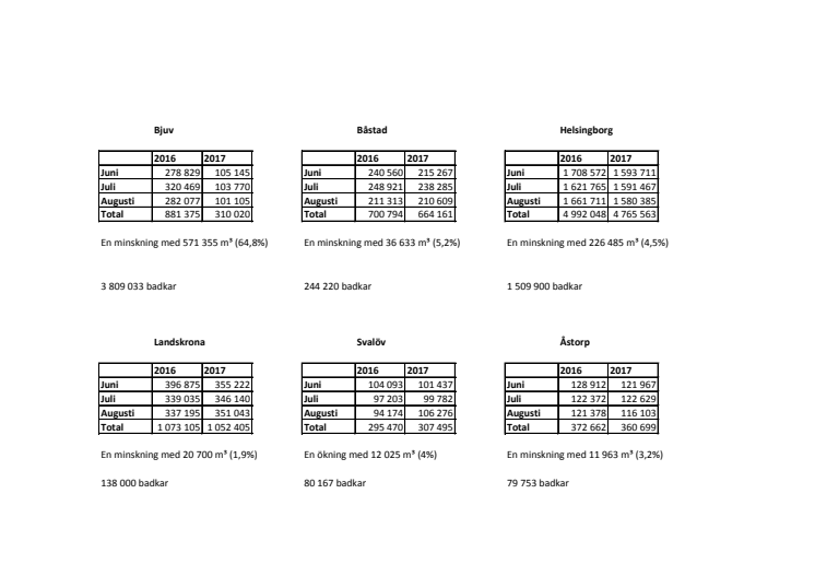 Vattenförbrukning juni-augusti 2016 och 2017