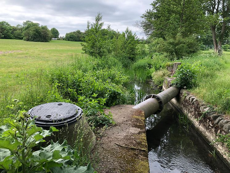 Boserupsbäcken i Bjuv där täta lock satts på dagvattenbrunnar för att minska risken för översvämning av dagvattensystemet vid skyfall.