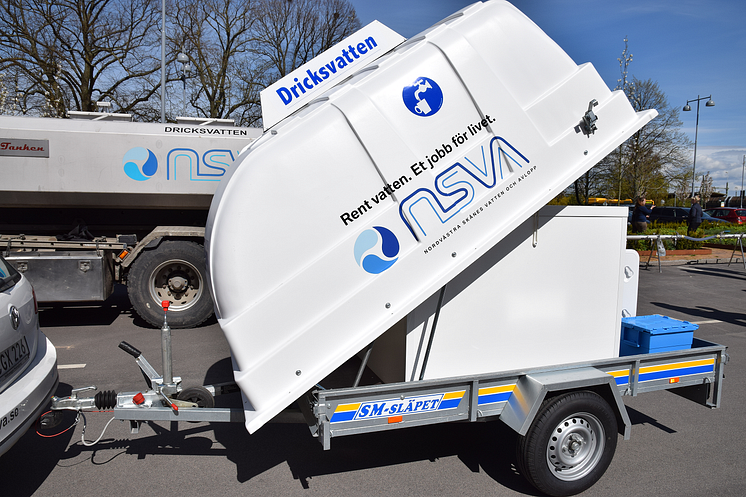 Krisberedskapsveckan, NSVA visar nödvattentankar, inrikesminister Anders Ygeman kommer på besök och dricker nödvatten. Säkerhetschef Anders Mårtensson, NSVA, och Dejan Tucakov, VA-ingenjör, NSVA.