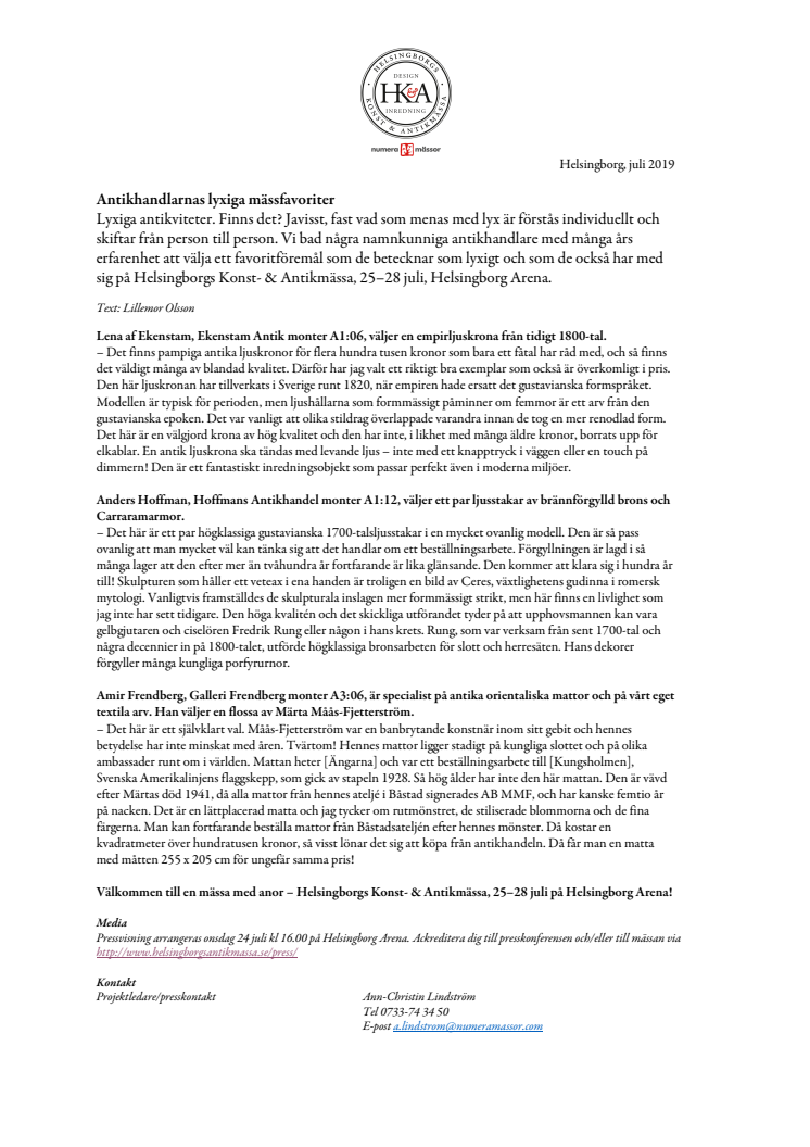 Lyxiga antikviteter. Finns det? Javisst, fast vad som menas med lyx är förstås individuellt och skiftar från person till person. Vi bad några namnkunniga antikhandlare med många års erfarenhet att välja ett favoritföremål som de betecknar som lyxigt och som de också har med sig på Helsingborgs Konst- & Antikmässa, 25–28 juli, Helsingborg Arena.
