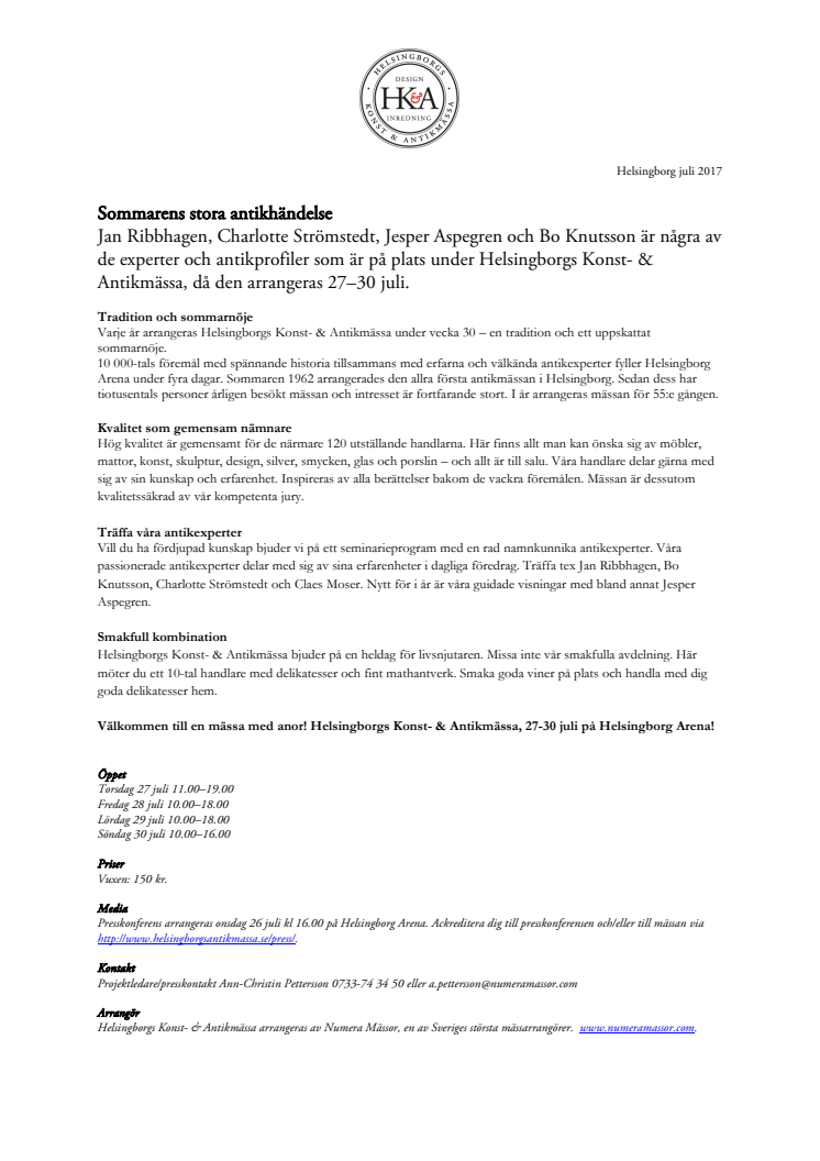 Helsingborgs Konst- & Antikmässa - Pressinbjudan