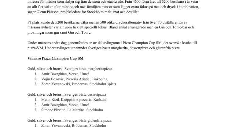 – Trots att Stockholm malt, mat och destillat är väldigt nyetablerad så har vi märkt av att det finns ett stort intresse för mässor som skiljer sig från de stora och etablerade. Från 4500 förra året till 5200 besökare i år visar att allt fler söker efter mindre och mer familjära mässor som lägger extra fokus på mat och dryck i kombination, säger Glenn Pålsson, projektledare för Stockholm malt, mat och destillat.