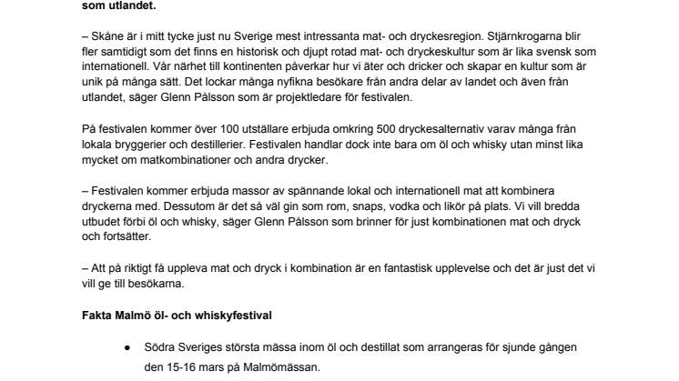 - Södra Sveriges största mässa inom öl och destillat som arrangeras för sjunde gången den 15-16 mars på Malmömässan.