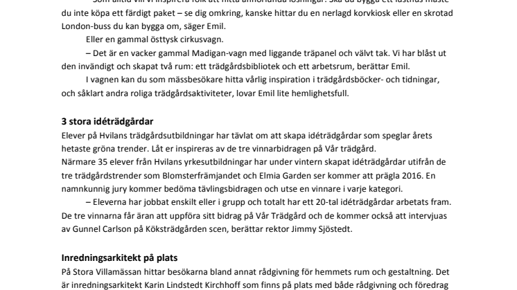 I vagnen kan du som mässbesökare hitta vårlig inspiration i trädgårdsböcker- och tidningar, och såklart andra roliga trädgårdsaktiviteter, lovar Emil lite hemlighetsfull.