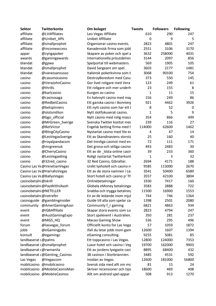 Nya Casino avslöjar: Störst och minst casinon på Twitter