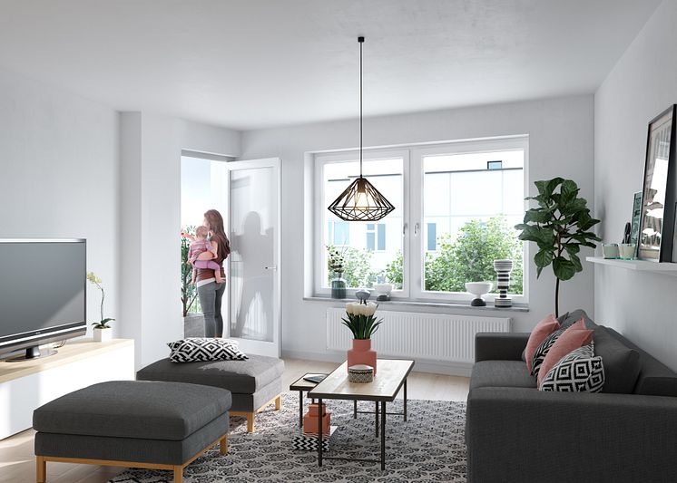 Brf Strandpromenaden Vardagsrum fransk balkong