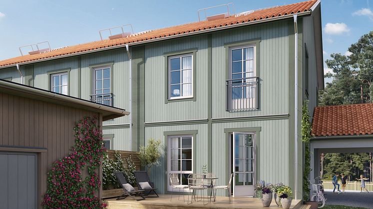 - Start Living är resurseffektiv och hållbar volymhustillverkning som också medger ett modernt designspråk med snickarglädje, säger Frida. Vi kan bygga konceptet i de flesta boendeformer, men just här har vi valt radhus och kedjehus, i populära storlekar.