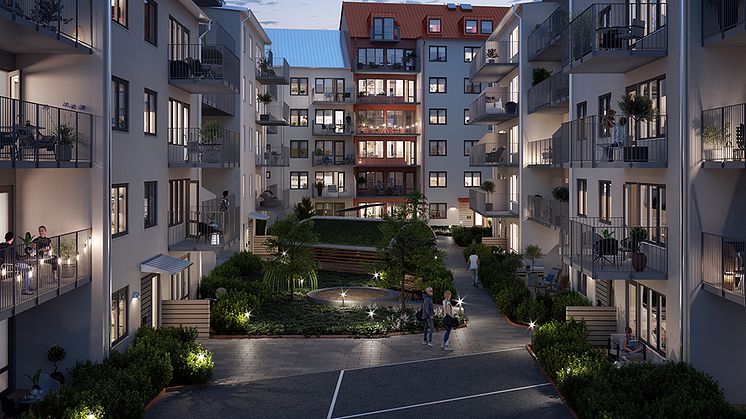 - Det som kännetecknar husen och hela kvarteret är trädgårdsstadskänslan, som vi har försökt definiera tydligt, bland annat genom en lummig innergård och balkonger som vetter mot den, säger Camilla Fors, kundansvarig på OBOS.