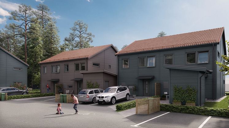 - Det är stilrena hus av hög kvalitet med en social och öppen planlösning på nedre plan och de tre sovrummen samlade på övervåningen, två badrum och gott om förvaring, säger hon. Utvändigt får varje boende uteplats, två parkeringsplatser och eget förråd.