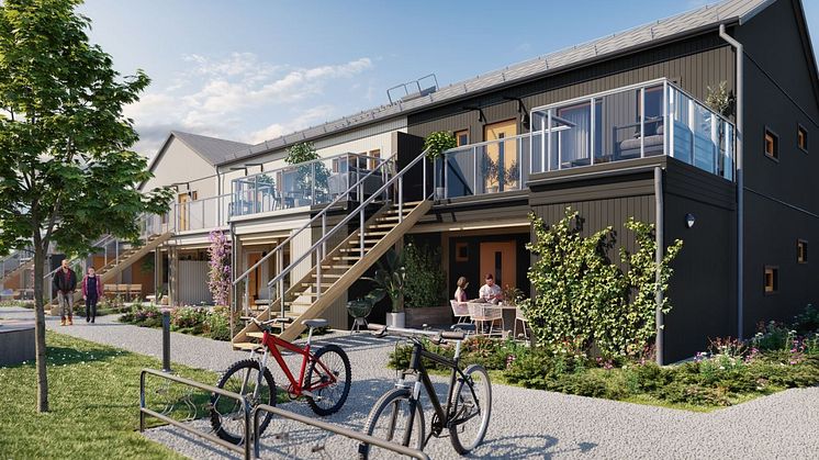 - Det blir en systerförening till Brf Elins Trädgårdar på så vis att projekten byggs intill varandra och husen får samma utseende med en klassisk träpanel och plåttak. Grönskan som blir genomgående i kvarteret flödar mellan de två bostadsprojekten och blir en härlig färgklick mot husens neutrala färgsättning, berättar Elisabeth.